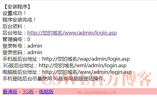 (9).程序组件和数据库信息都完成后,就可以填写网站后台的资料了