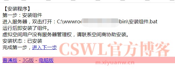 (1).程序上传至空间后,访问:域名/install 会出现下图提示