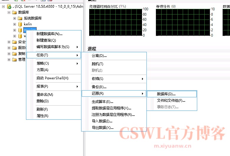 6.1 打开服务器上的数据库(这里以Mssql2008举例,基本上都通用)然后鼠标右键点击你为此程序创建的数据库,依