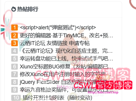首页和板块页右侧展示帖子排行榜,目前没有使用复杂的算法,只是按浏览量进行排序。