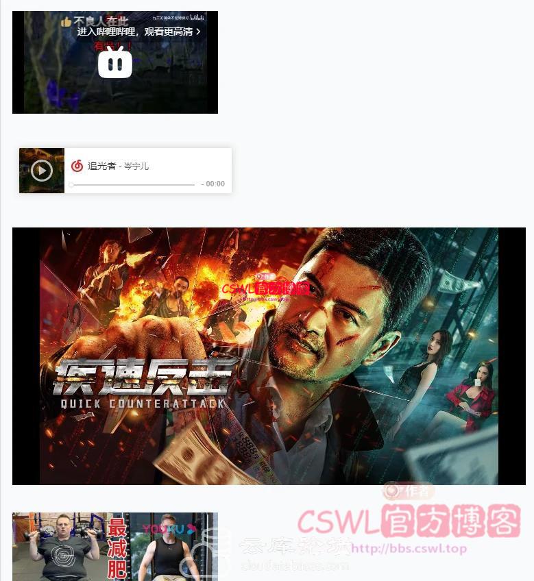 目前支持:腾讯视频、优酷视频、哔哩哔哩、网易云音乐。