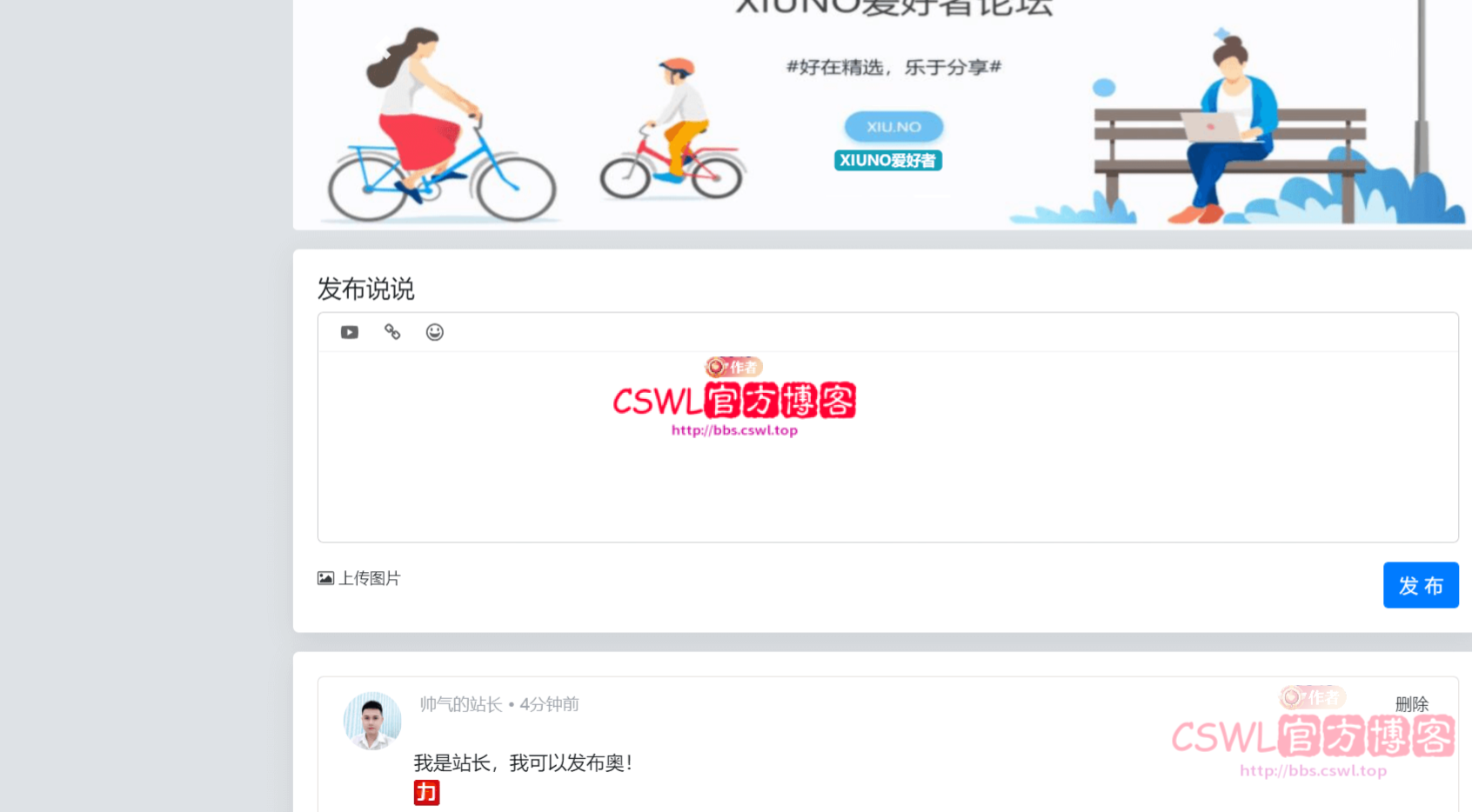 本插件基于朋友圈插件,仅调整了权限,修改为仅管理员可发布,可以用来做类似于站公告或者是进程发布一样的效果!